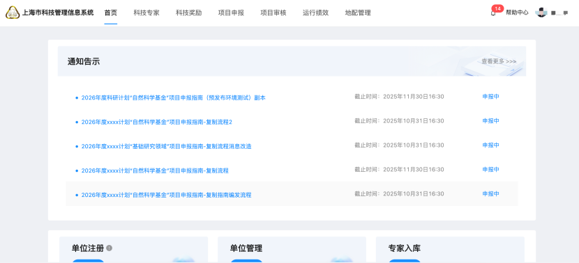 6. 一网通办用户登录成功,页面自动跳转回上海科技系统用户中心首页。